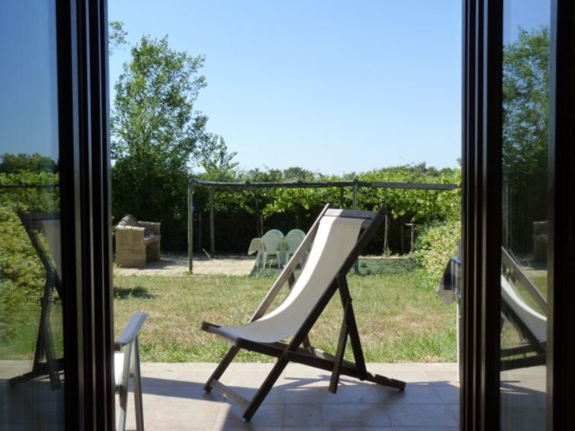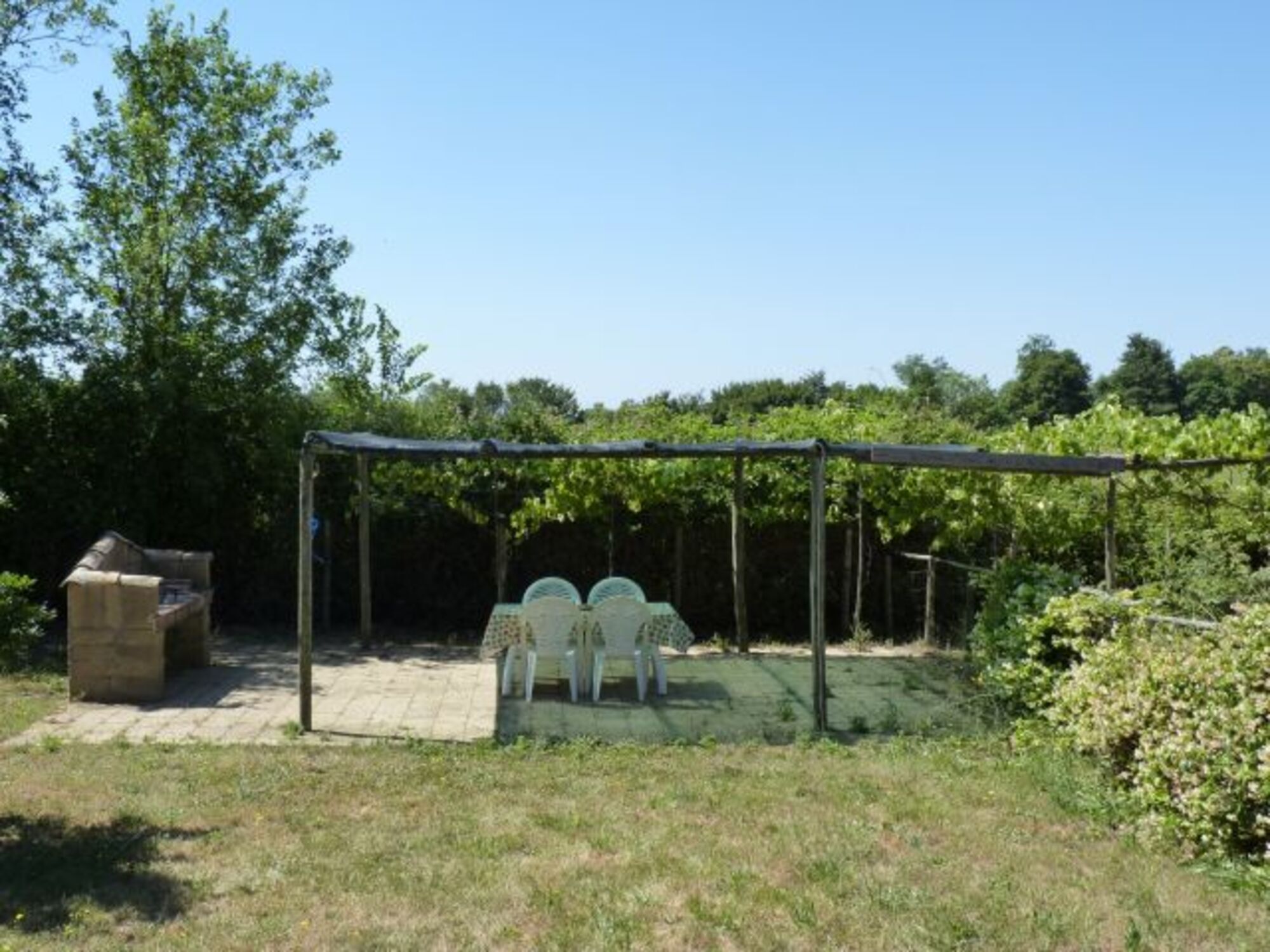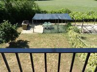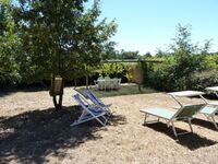 Im eigenem Garten befindet sich eine Grillstelle, Gartenmöbel und Liegestühle.