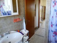 Eine Waschmaschine steht Ihnen ausserhalb des Hauses zur Verfügung. Waschbecken, Spiegel, Fenster im Bad