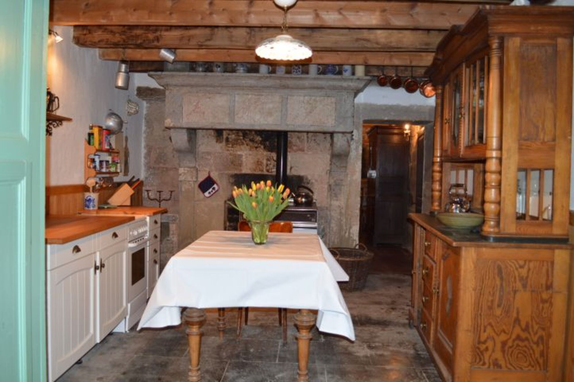 Hier wird noch mit Holz gefeuert und auf dem Holzherd kann gekocht und gebacken werden.