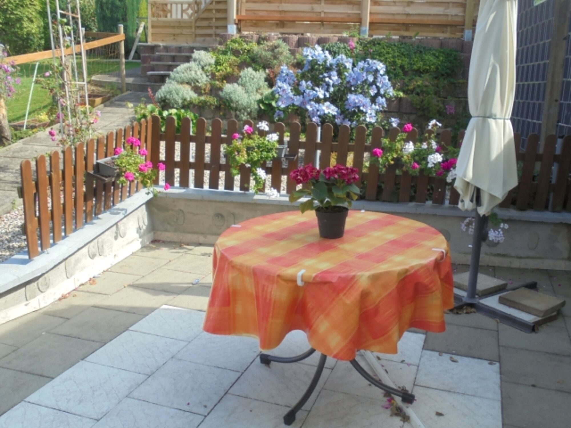 Unser großer idyllischer Garten mit Grillplatz und verschiedenen Sitzmöglichkeiten läd zum Erholen ein und darf von Ihnen mit genutzt werden