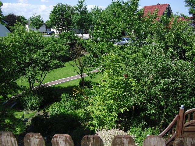 Was noch schön ist an dieser Ferienwohnung ist die Dachterrasse mit Aussicht auf den Garten.