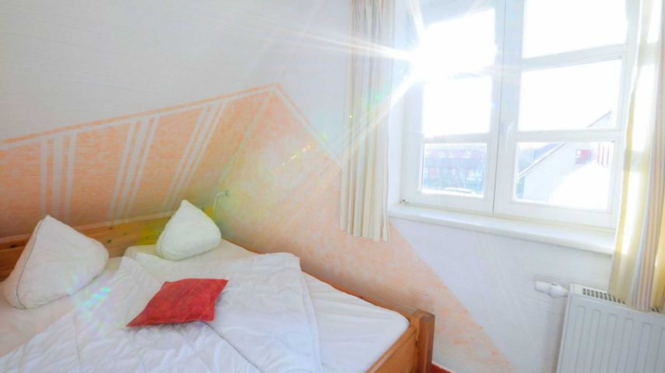 Beide Schlafräume (keine Durchgangszimmer!) verfügen über Doppelbetten und sind mit Rollos ausgestattet, sodass Dich die aufgehende Sonne nicht aus dem Schlaf reißt. Das geräumige Badezimmer mit Fenster bietet eine Badewanne mit Dusche, WC und einen Handtuchheizkörper.
