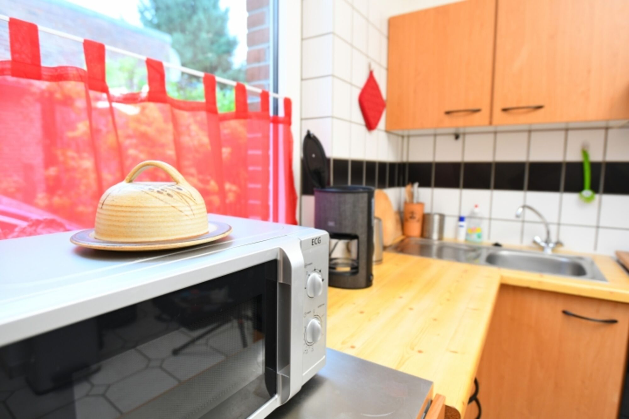 4-Platten Herd, Korkenzieher / Flaschenöffner, Geschirrhandtücher, Mülltüten, Essplatz in der Küche
