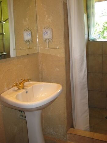 Das Haus L'HANGAR hat 2 Schlafzimmer, Wohnzimmer/Küche, ein Toilet und ein Badezimmer.