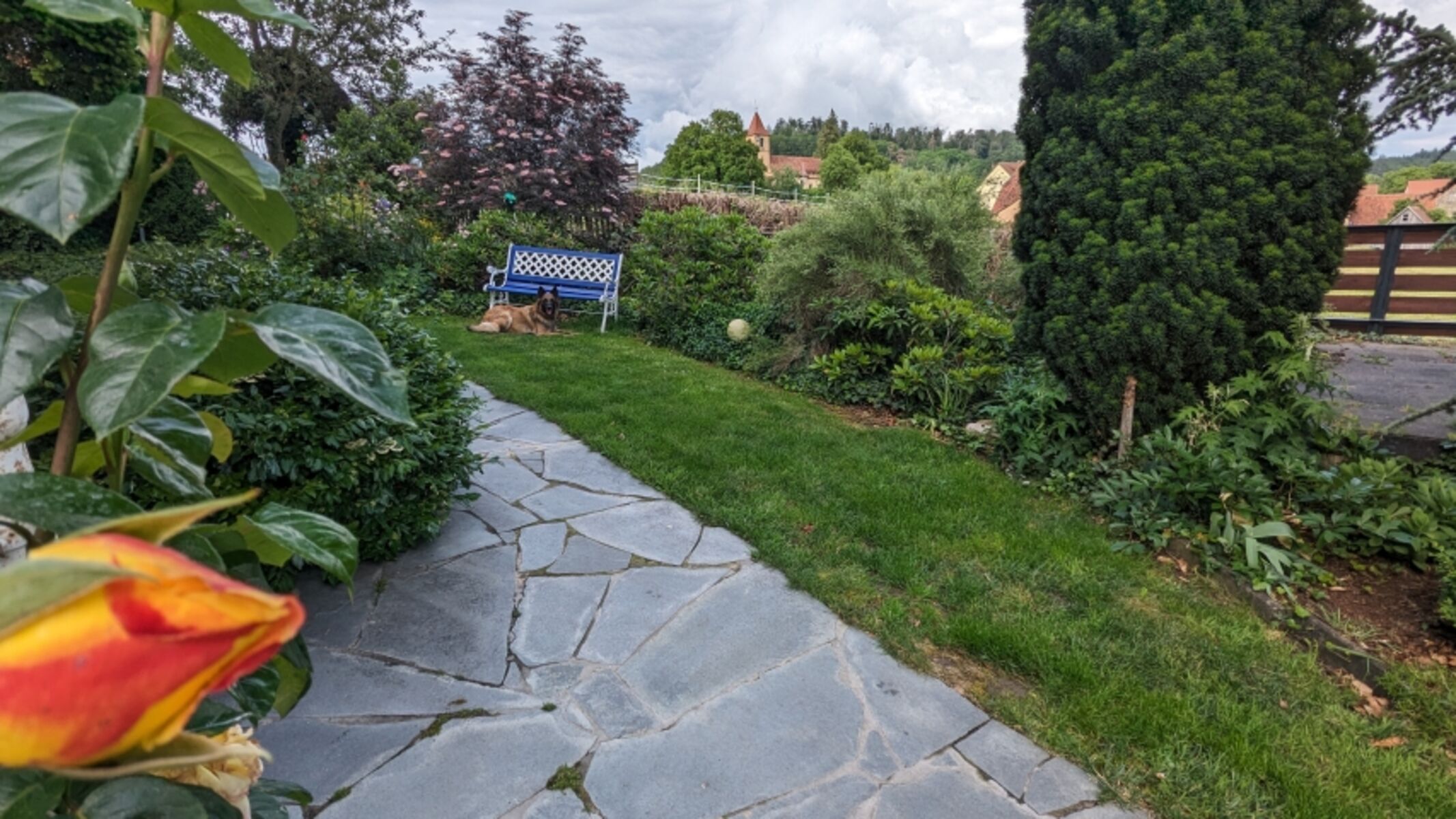 "fiffi"ge Kriterien: Da die Eigentümerin selbst auch Hunde hält, heißt Sie große und auch mehrere Hunden herzlich willkommen. Das Grundstück (ca 1050 qm) ist rundum solide und ca. 1.00 bis 1.50 m hoch eingezäunt und zusätzlich zum Großteil von einer sehr dichten Hecke umgeben.