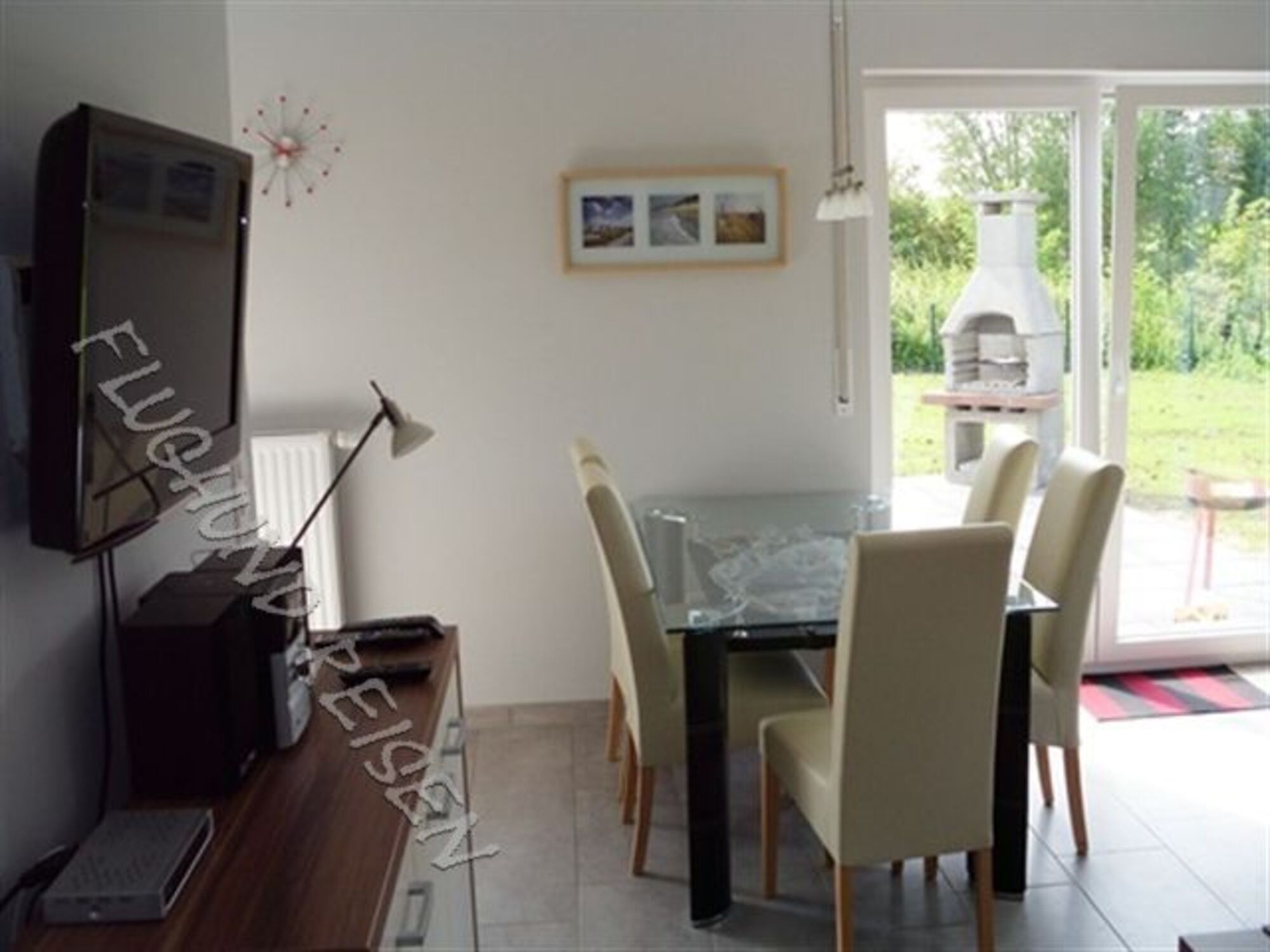 Einrichtung: Wohnesszimmer mit wunderschönem Kaminofen, so dass das Haus auch in der kalten Jahreszeit bedenkenlos gebucht werden kann. Komplett eingerichtete Küche. 2 Schlafzimmer. 2 Badezimmer mit Dusche und WC. Terrasse und Garten mit Gartenmöbeln