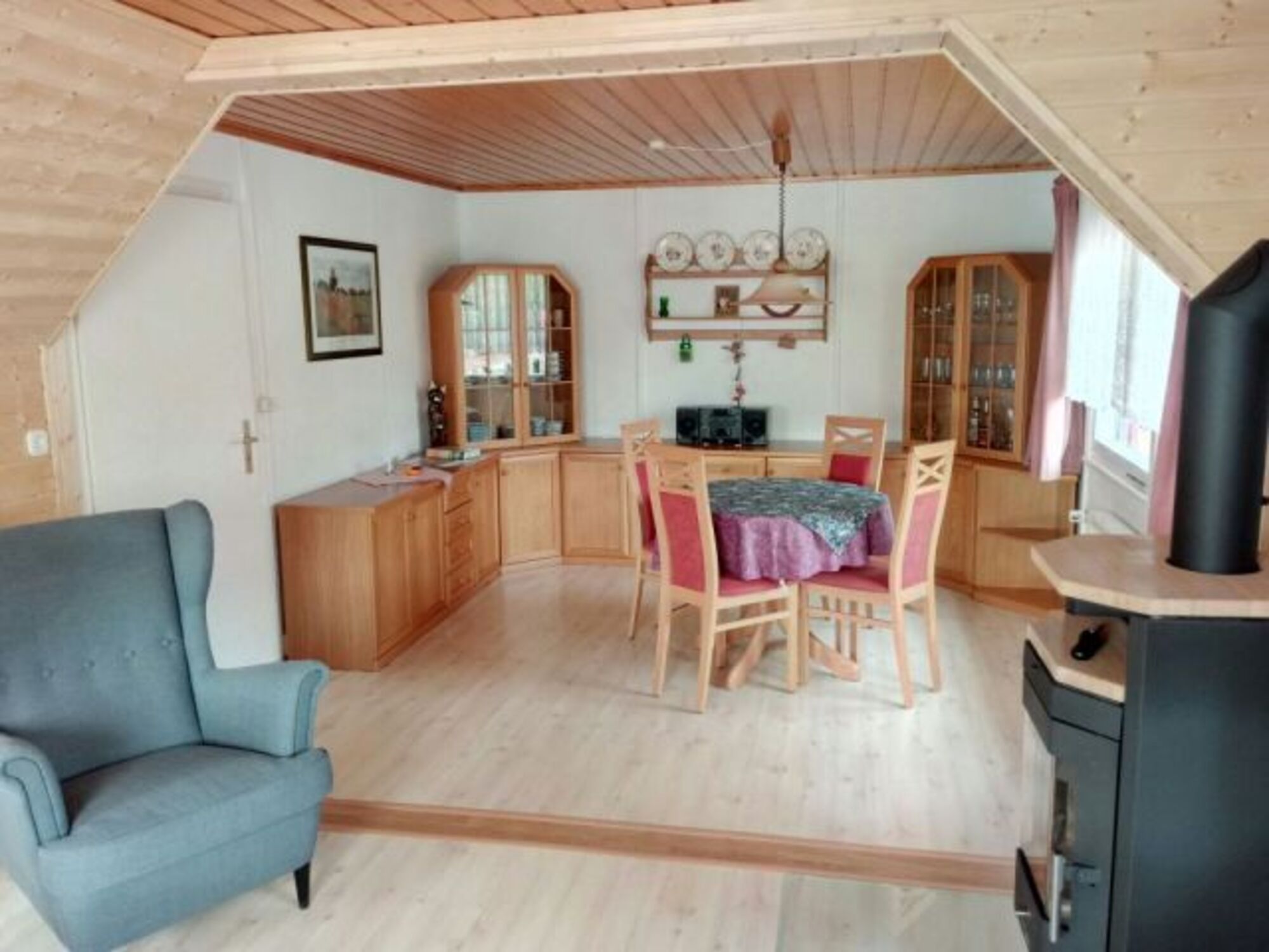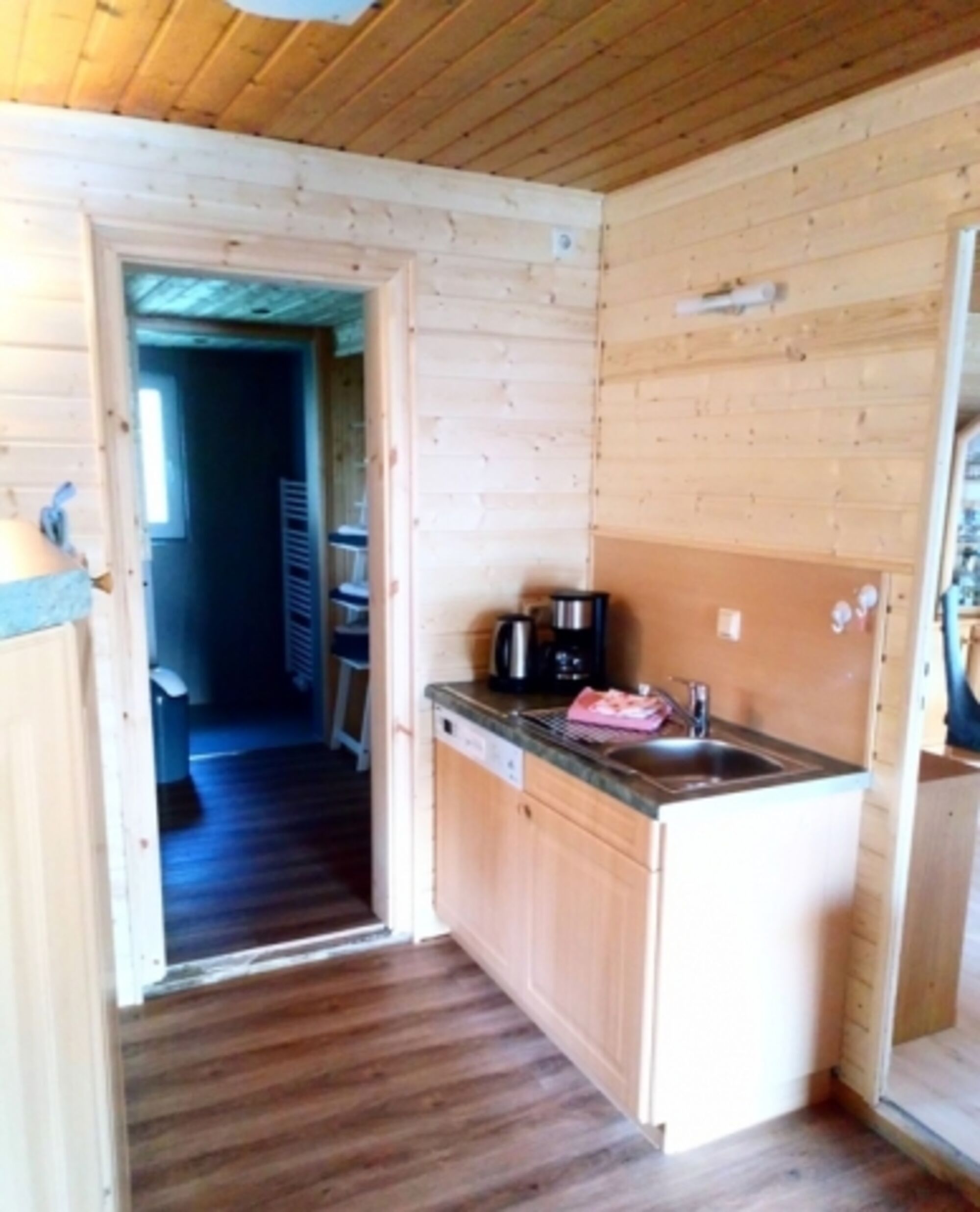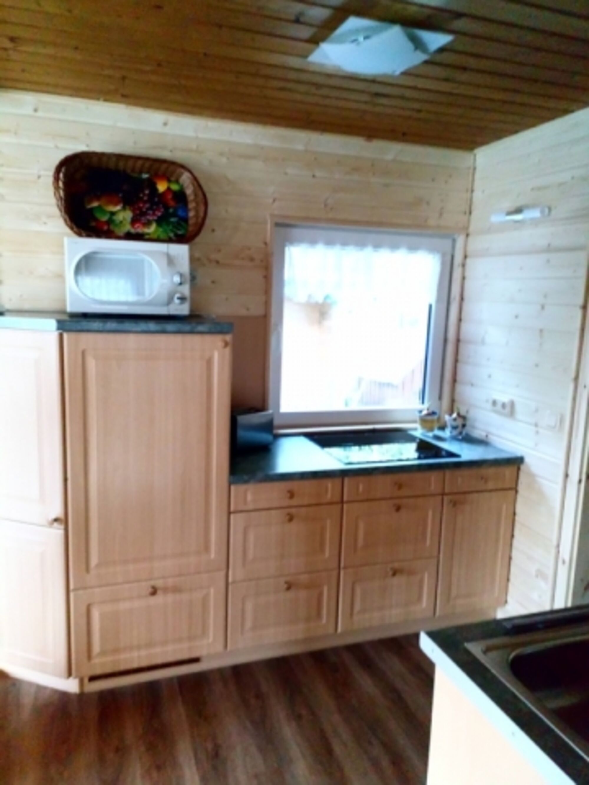 Die Küche ist mit allem ausgestattet, was man im Urlaub benötigt. Eine Kochplatte (Induktionsherd) mit vier Kochfeldern, Kaffeemaschine, Mikrowelle, Toaster, Wasserkocher und genügend Geschirr für 7 Personen. (kein Backofen)