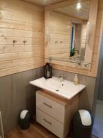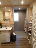 Die Dusche und das WC befindet sich im Haus im Erdgeschoss.
