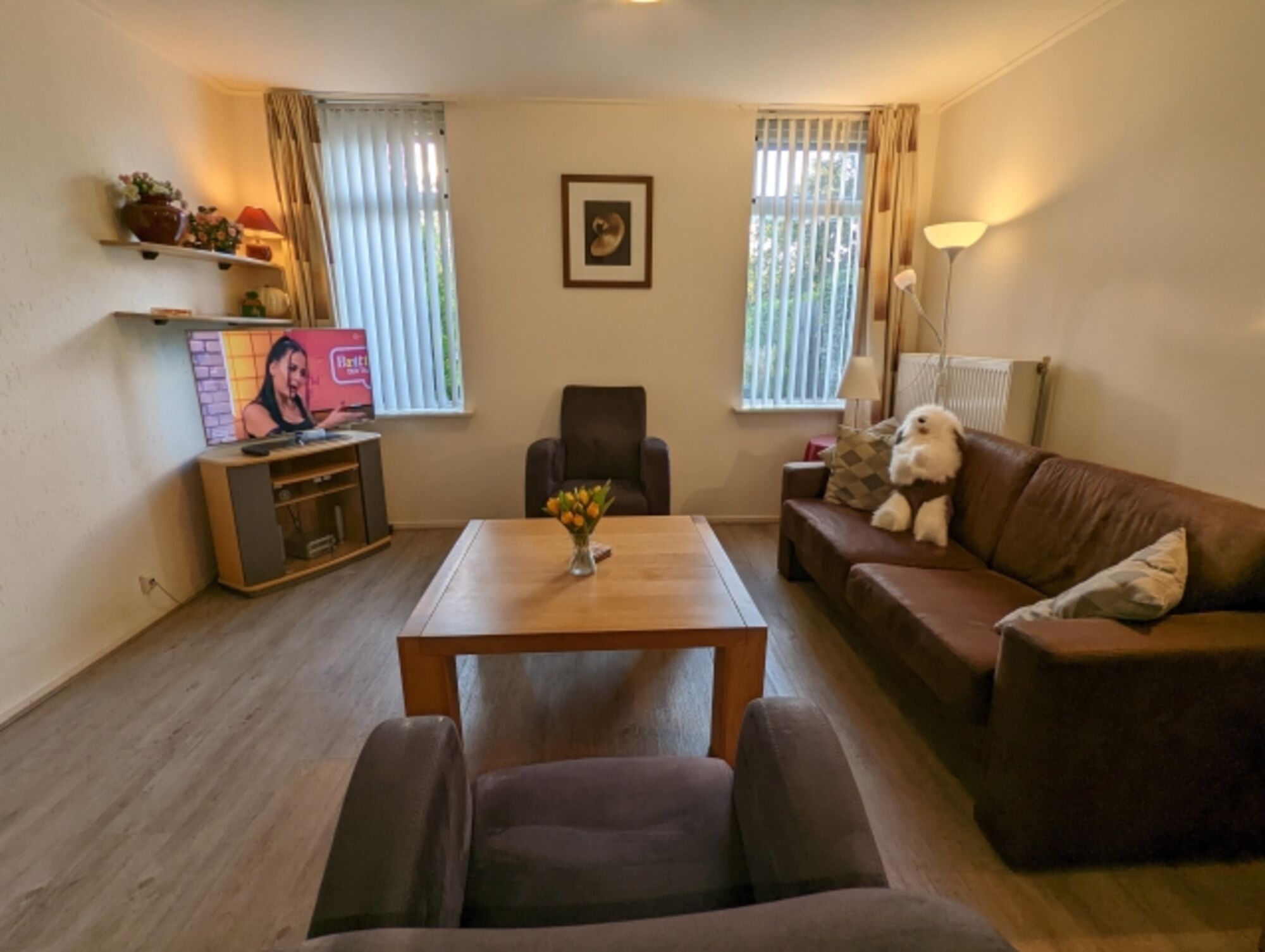 Im OG (erreichbar über typisch holländische steile Treppe) gibt es 2 Schlafzimmer mit Doppelbett und 1 Schlafzimmer mit Einzelbett (teilweise Dachschräge). Garten mit Terrasse und Gartenmöbeln. Zentralheizung. Kinderhochstuhl und Kinderbett vorhanden. E-Ladestation für E-Bikes.