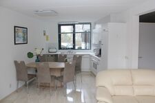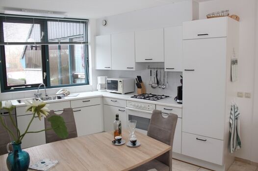 Gasofen / Gasherd, Dunstabzugshaube, Kühlschrank mit Gefrierfach, Senseo-Kaffeeautomat, Essplatz in der Küche