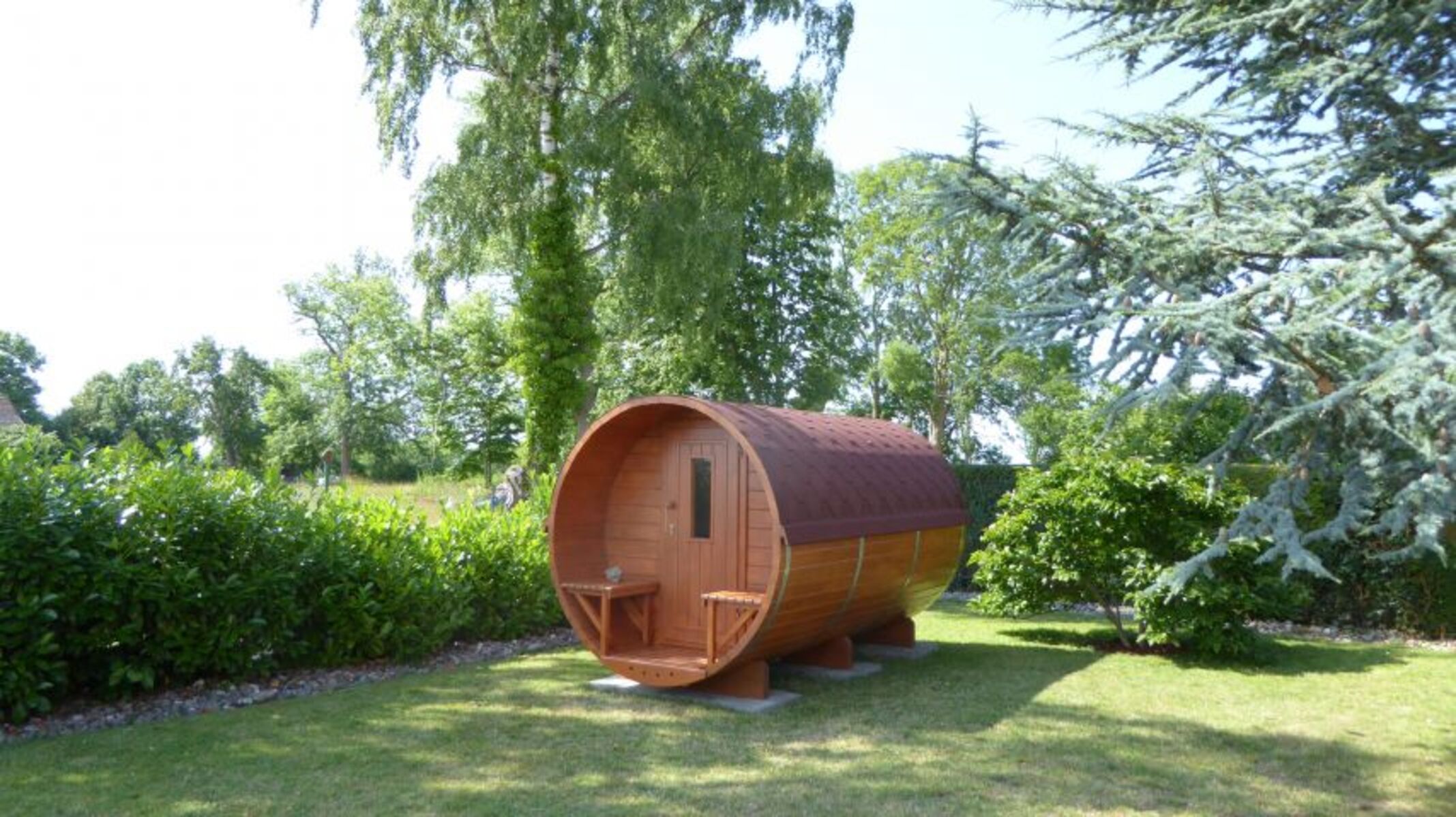 Liegewiese, Gartenmöbel, Kohlegrill, Bänke, Holzgrill, Windschutz, Sauna im Garten