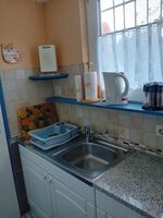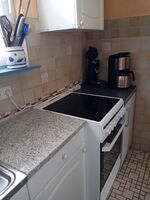 4-Platten Herd, Cerankochfeld, Kühlschrank mit Gefrierfach, Senseo-Kaffeeautomat, Korkenzieher / Flaschenöffner, Gewürze (Salz, Pfeffer, Zucker), Mülltüten