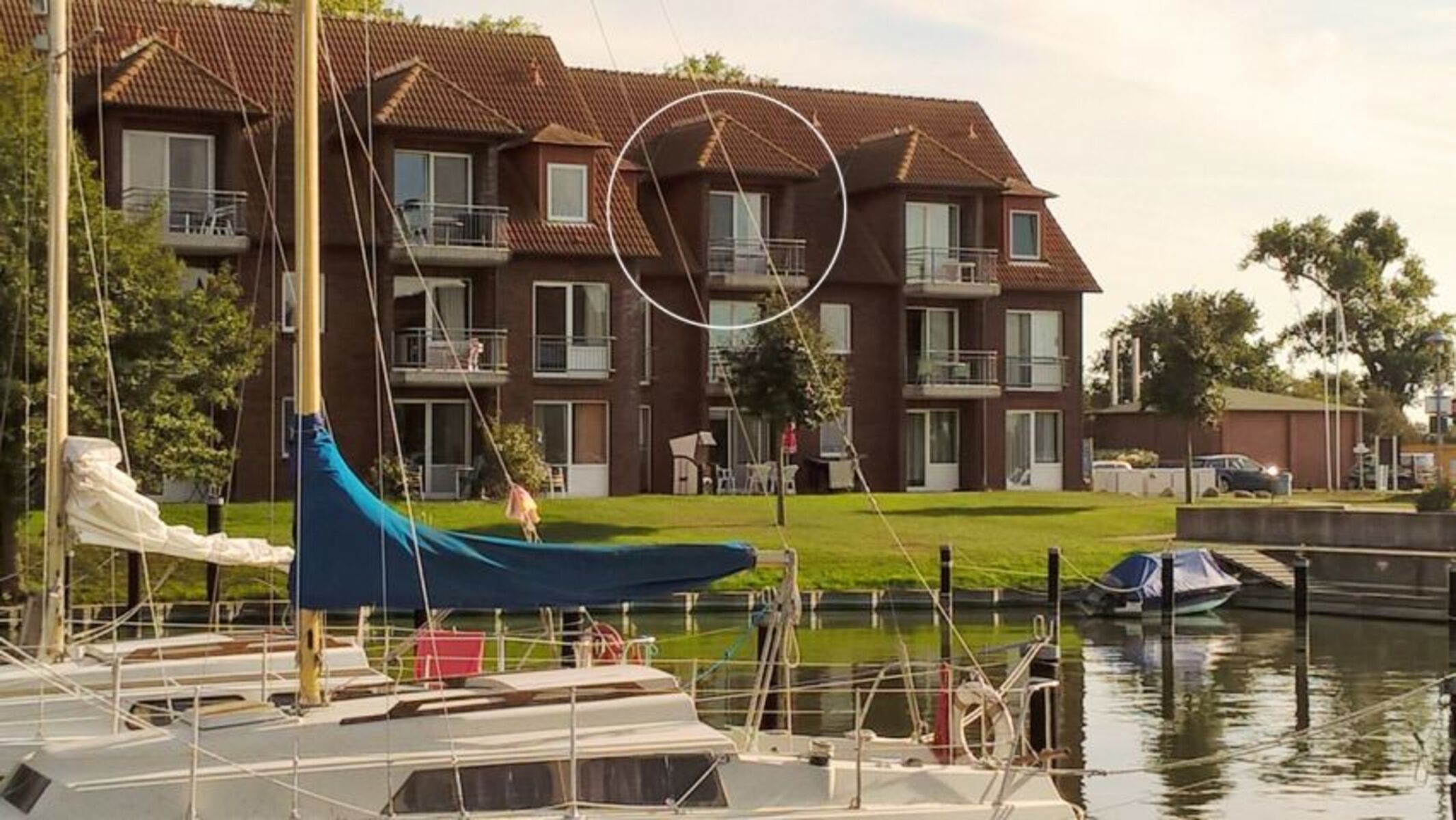 Die einmalige Lage des Apartments direkt am Wasser lässt sofort das richtige Urlaubsgefühl aufkommen. Sie können auch mit Ihrem Boot hier ankommen und direkt in der Marine ankern. Der Balkon bietet einen herrlichen Blick auf die Marina und das Haff.