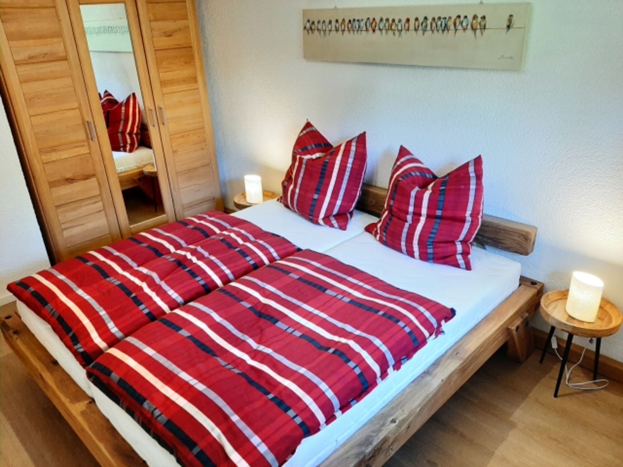 Es sind 3 ansprechende Schlafräume für bis zu 4 Gäste vorhanden (5 Gäste inkl. Kinder). Davon 2 ebenerdig und eine zum Wohnzimmer hin offene Galerie im 1.Stock, mit einem seit 2025 neuen Boxspringbett (180x200 cm). Das sehr schöne Hauptschlafzimmer mit Fenster zum Garten ist ausgestattet mit einem edlen Balkenbett aus massiver Wildeiche (180x200 cm / Einzelmatratzen) und einem Echtholzschrank mit Ganzkörperspiegel. Ein weiteres Schlafzimmer, liegt ruhig zur Vorgartenseite und verfügt über ein ebenfalls seit 2025 neues "französisches" Boxspringbett (140x200 cm).