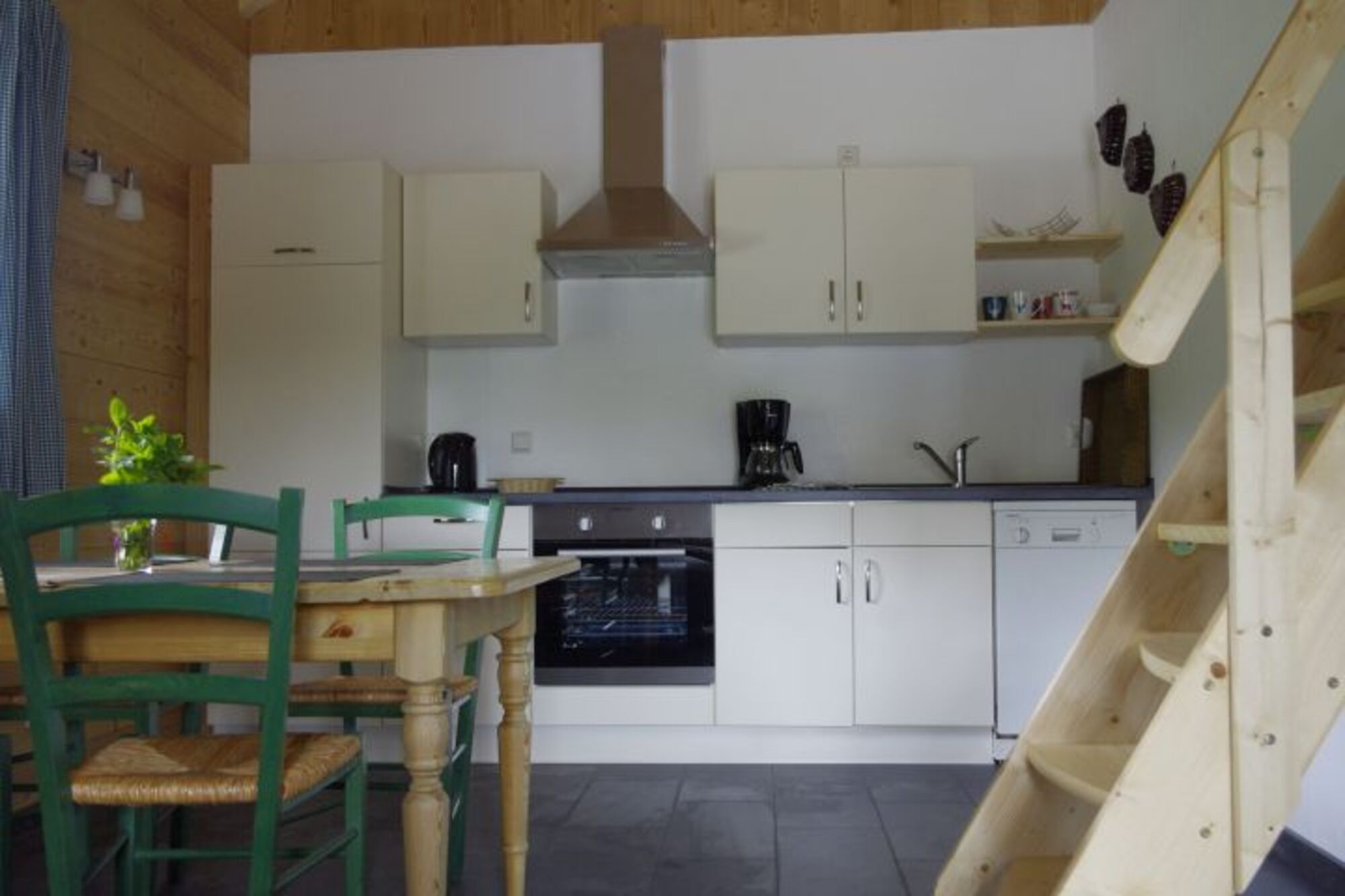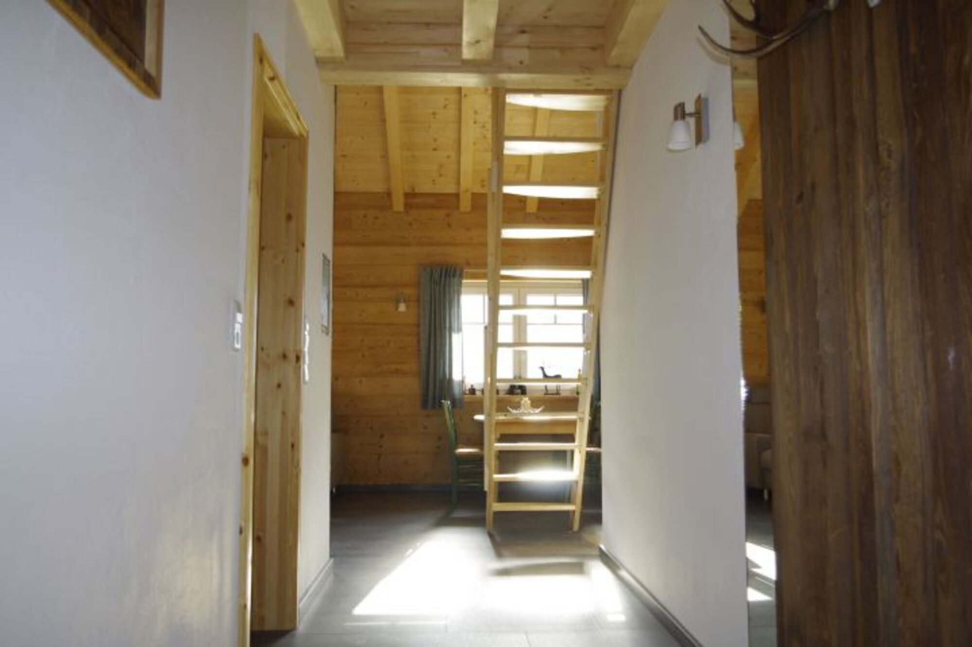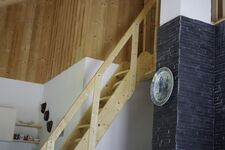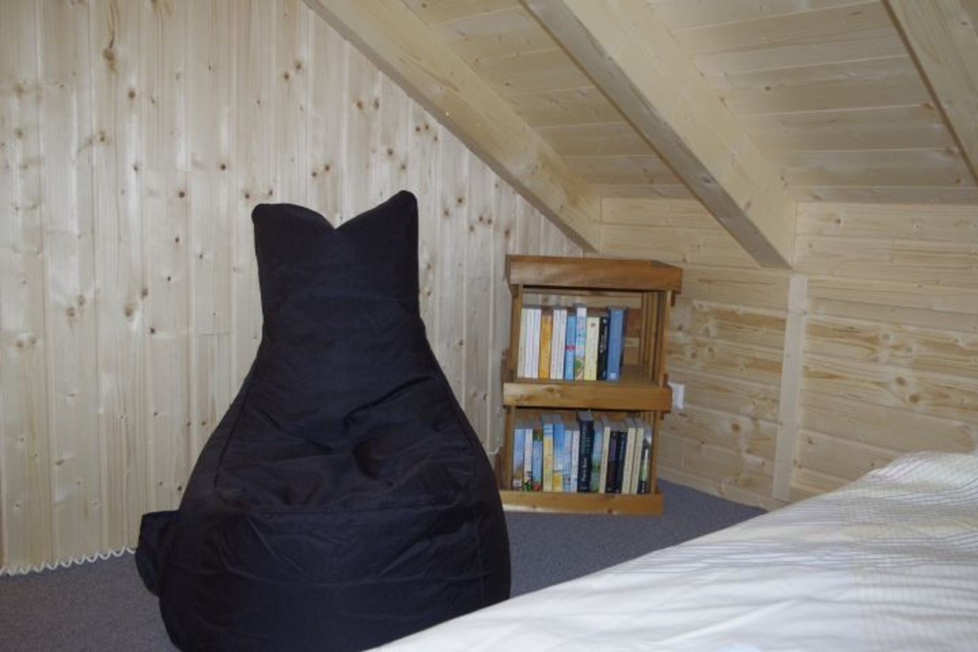 Die Ferienwohnung ist durch eine Galerie ergänzt. Die Galerie unter der Dachschrägung ist über eine Raumspartreppe zu erreichen. Sie ist zum Wohnraum hin offen. Auf der Galerie können 2 Personen schlafen. Hier findest du auch eine gemütliche Leseecke mit spannenden Büchern.
