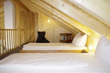 Kleinkinderbett kann auf Anfrage gestellt werden. Doppelbett 1,60 x 2,00m, Wecker, Leselampe am Bett