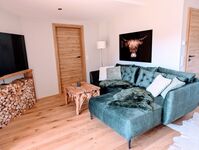 Die geschmackvolle Einrichtung überzeugt mit modernen Farben, stilvollen Details und einer gemütlichen Atmosphäre. Im Erdgeschoss gibt es eine offene, voll ausgestattete Wohnküche, eine Essecke und einen Kachelofen. Außerdem finden Sie hier ein Doppelschlafzimmer sowie ein Bad mit Fußbodenheizung, begehbarer Dusche, Doppelwaschtisch, Handtuchwärmer, Radio und Waschmaschine. Im Obergeschoss erwarten Sie ein Wohnzimmer mit überdachtem Balkon, ein Doppelschlafzimmer mit Balkon und wunderschönem Bergblick sowie ein Bad mit begehbarer Dusche. Wohnzimmer und beide Schlafzimmer sind mit Flatscreen-TVs ausgestattet. Am Haus stehen zwei Pkw-Stellplätze zur Verfügung, und im Keller gibt es einen Wäschetrockner, einen Kühl-/Gefrierschrank sowie Platz zum Abstellen von Skiern. Der schöne, eingezäunte Garten zur alleinigen Nutzung bietet eine Terrasse mit Lounge, Sonnenschirm und Liegestühlen.