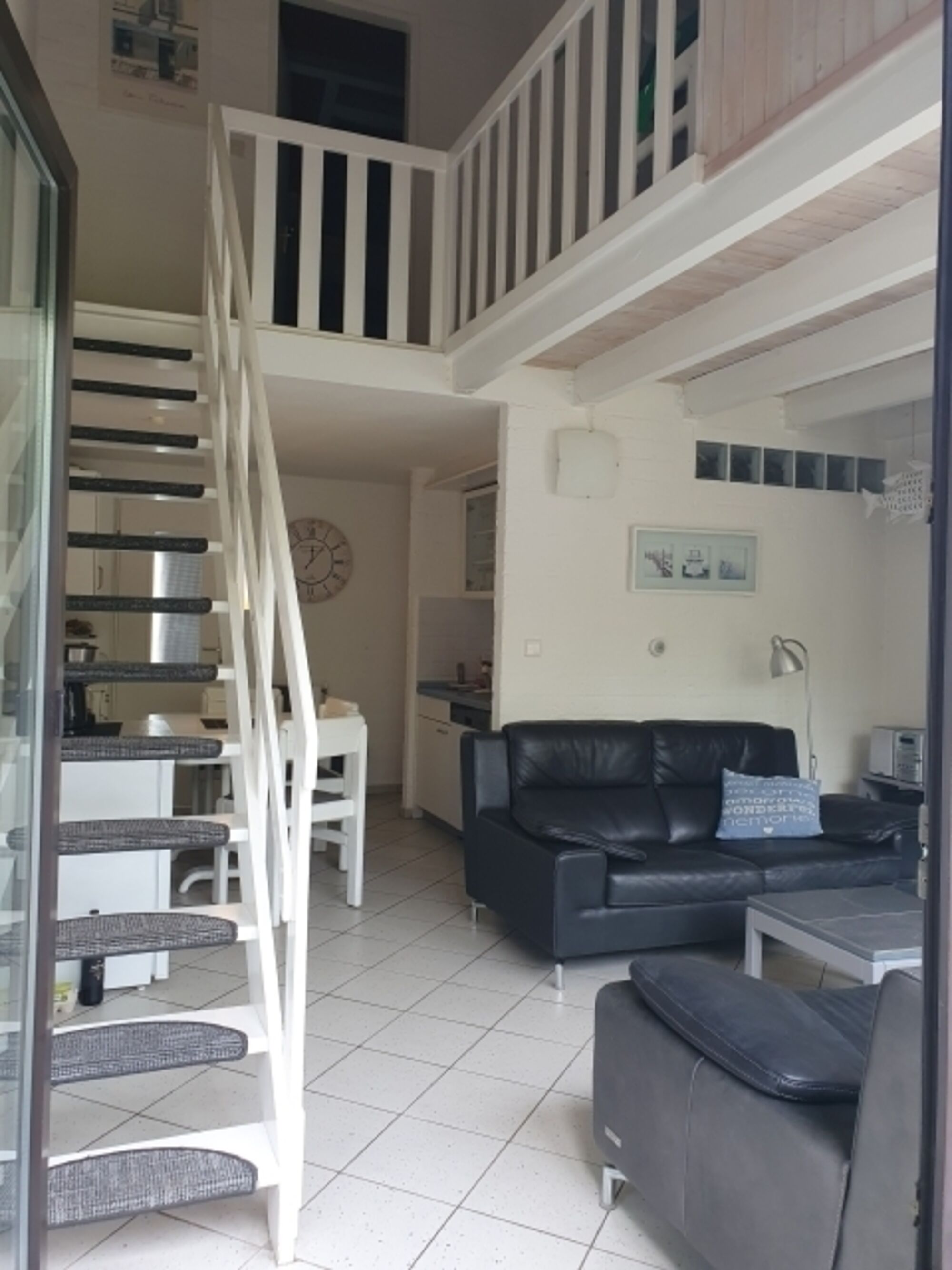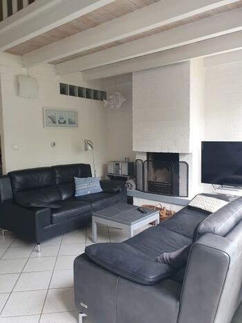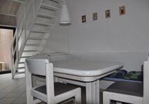 Im Erdgeschoss erwartet Sie ein helles Schlafzimmer mit Doppelbett sowie das gepflegte Duschbad. Das Herzstück des Hauses ist der offene Küchen- und Essbereich, der direkt in das gemütliche Wohnzimmer übergeht. Hier sorgt ein offener Kamin für behagliche Abende nach einem langen Strandspaziergang. Im Obergeschoss finden bis zu vier weitere Personen bequem Platz.