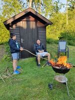 Liegewiese, Gartenmöbel, Kohlegrill, Holzgrill, Windschutz