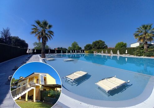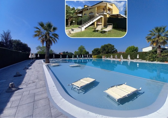 Ferienwohnung in Lazise am Gardasee mit 210 m² privaten und komplett umzäunten Garten. Poolanlage, Klima, Internet WiFi, TV SAT, Grill, Esstisch im Freien, Haustiere willkommen!
