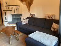 TV, TV-Flachbildschirm, Hi-Fi-Anlage mit Bluetooth, CD´s, Kachelofen, 3er-Sofa, Sessel