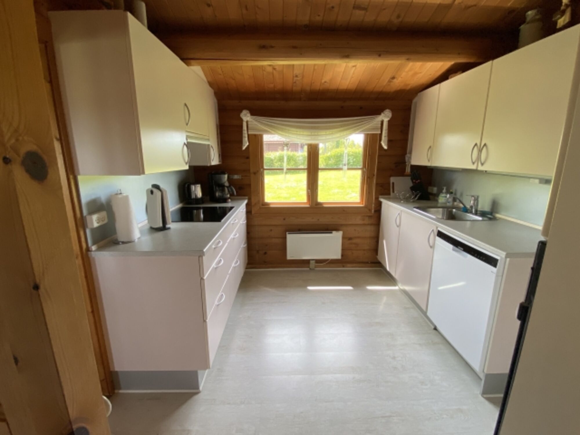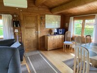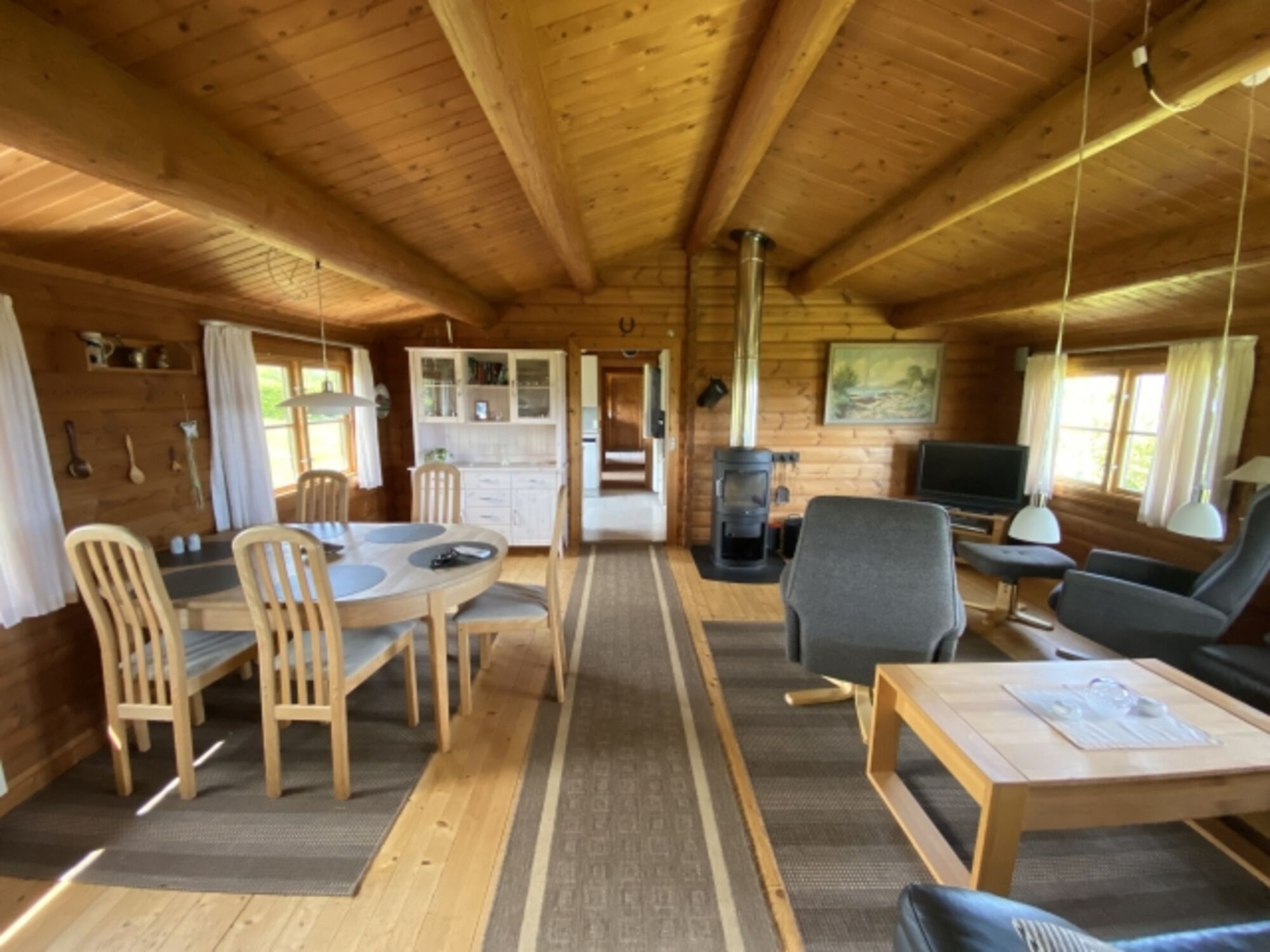 Unser Ferienhaus ist ein norwegisches Holzblockhaus, welches mit seinem gemütlichen Wohn-Essbereich mit Kamin zum wohlfühlen einlädt.