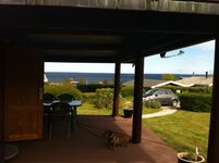 Im hinteren Teil des Hauses liegt ein Wirtschaftsraum mit Waschmaschiene, Trockner und einem zweitem Kühlschrank. Der große Garten ist komplett eingezäunt, so das auch unsere vierbeinigen Gäste sich frei bewegen können. Die Terasse ist zur Hälfte überdacht und man kann den schönen Meerblick genießen.