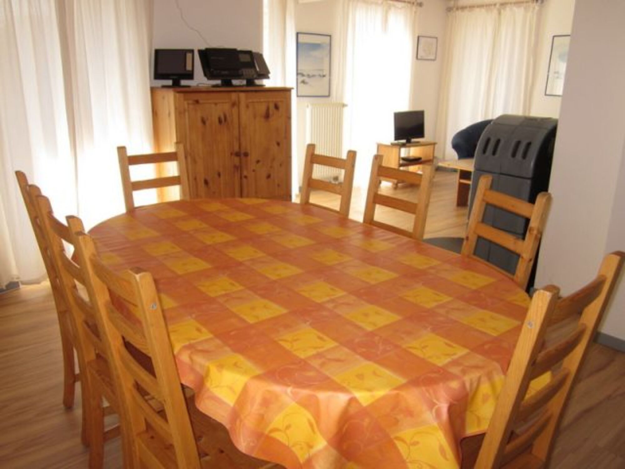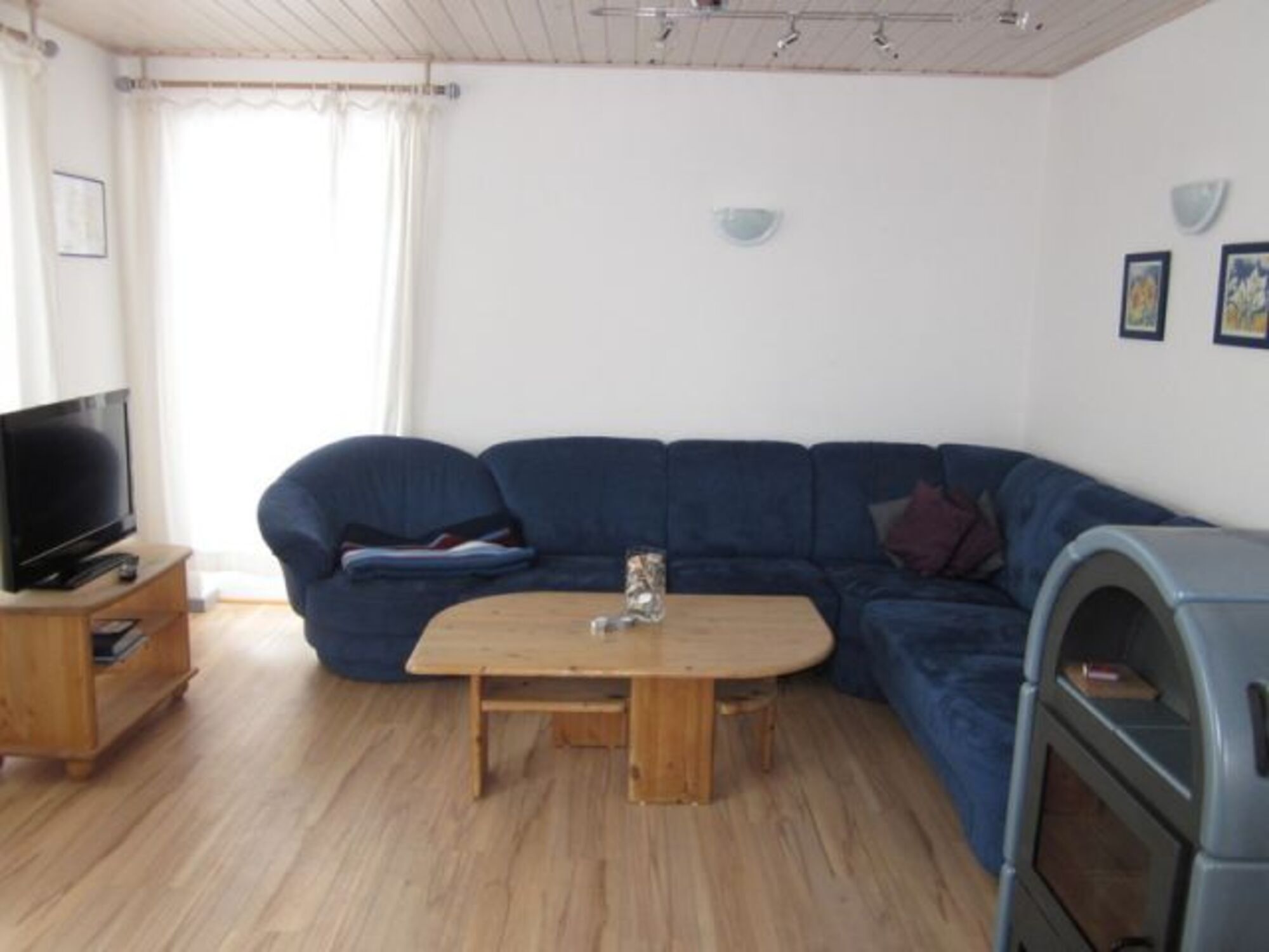 Im Erdgeschoss befinden sich ein Wohnzimmer mit Kaminofen, der gerade im Winter zum kuscheligen Wohlfühlen einlädt und ein großer Essbereich.