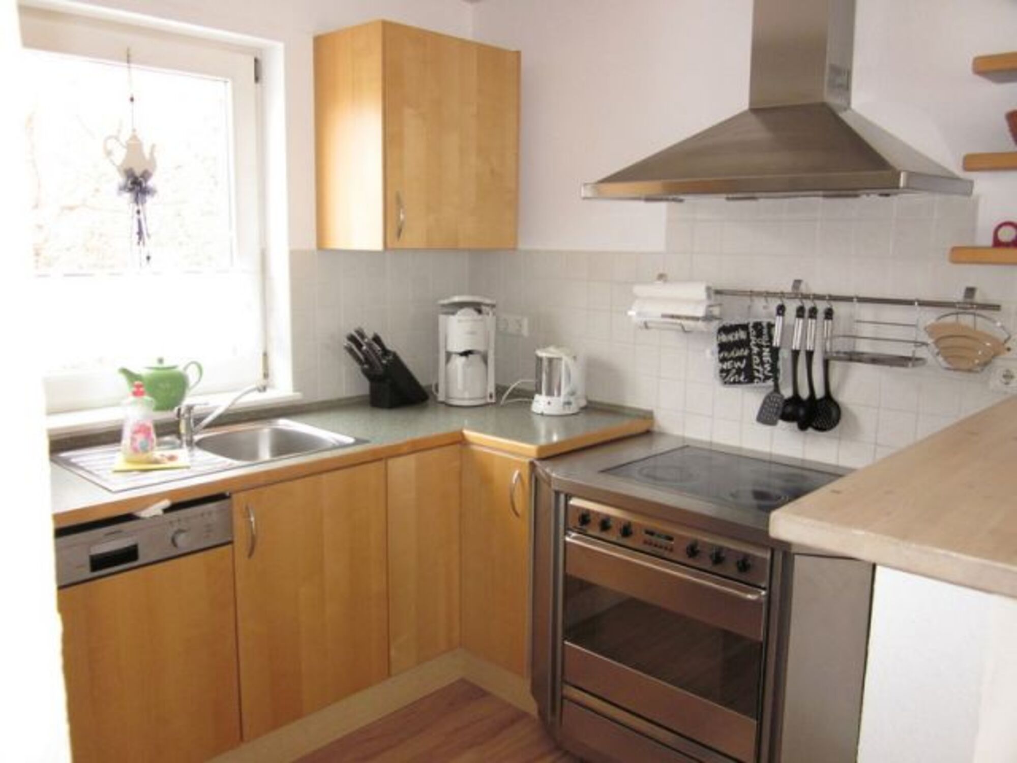 Die angrenzende voll ausgestatte Küche lässt keinen Wunsch offen. Auch für den vierbeinigen Begleiter ist mit einem Futter/Wassernapf gesorgt.