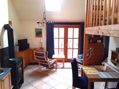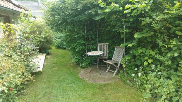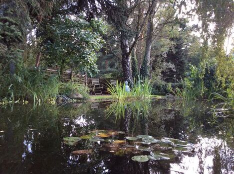 Auf unser Grundstück hat die unterschiedlichsten Sitzecken. Im Schatten der riesigen Kastanie im Innenhof, vor unserem "Privatzoo" können sie Hühnern und Kaninchen beim Leben zuschauen, Im Garten finden sie viel Sonne, auf dem Steg des Schwimmteiches ist die Wasserwelt zu bewundern und dann hat jedes Studio auch noch eine eigene kleine Terasse.