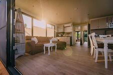 Das Hausboot verfügt über eine komfortable Innenausstattung mit einer Küche und separaten Schlafzimmern.
