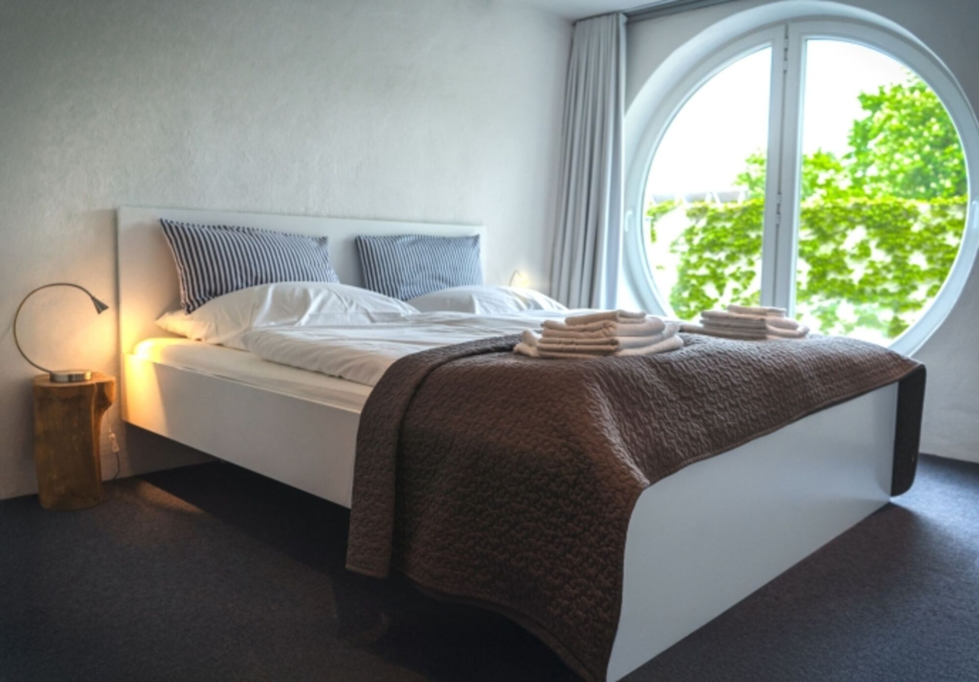 Schlafen unterm Bullauge mit Blick in den Garten