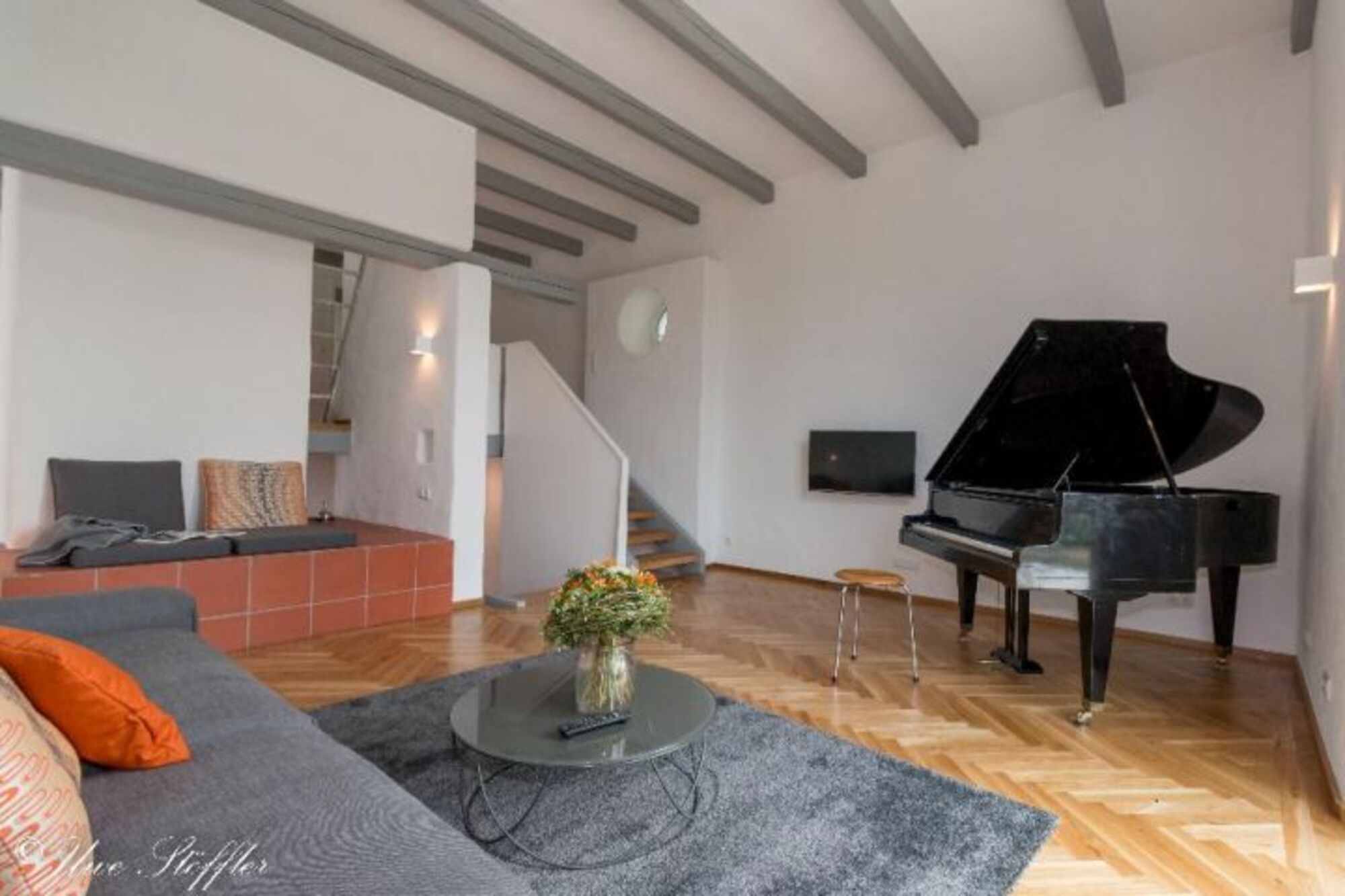 Hochwertiges Parkett und vom Schreiner gefertigte Küche