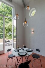 Handwerkliche Perfektion trifft puristische Architektur und schafft im Einklang mit der Natur einen Ort der Erholung. Das Ferienhaus ist ein offener Raum zum Wohnen, Kochen, Essen und Musizieren. Hohe Decken und große Fenster lassen Licht und Luft herein – hier kann die Seele richtig entspannen.