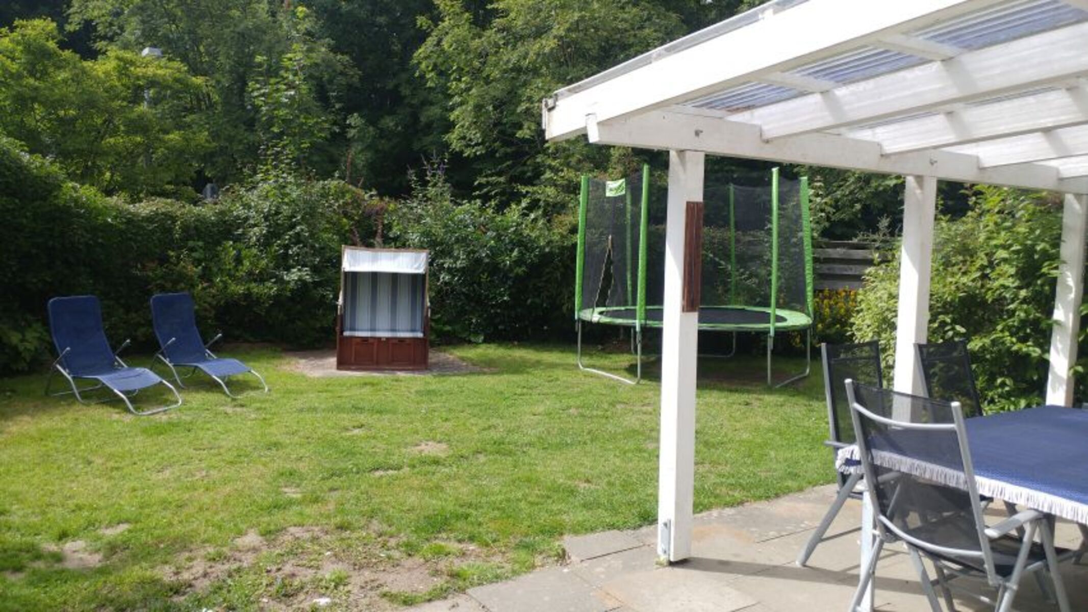 Das vollständig eingezäunte Grundstück bietet mit ca. 550 qm genug Platz zum Spielen, Toben und Ausruhen.