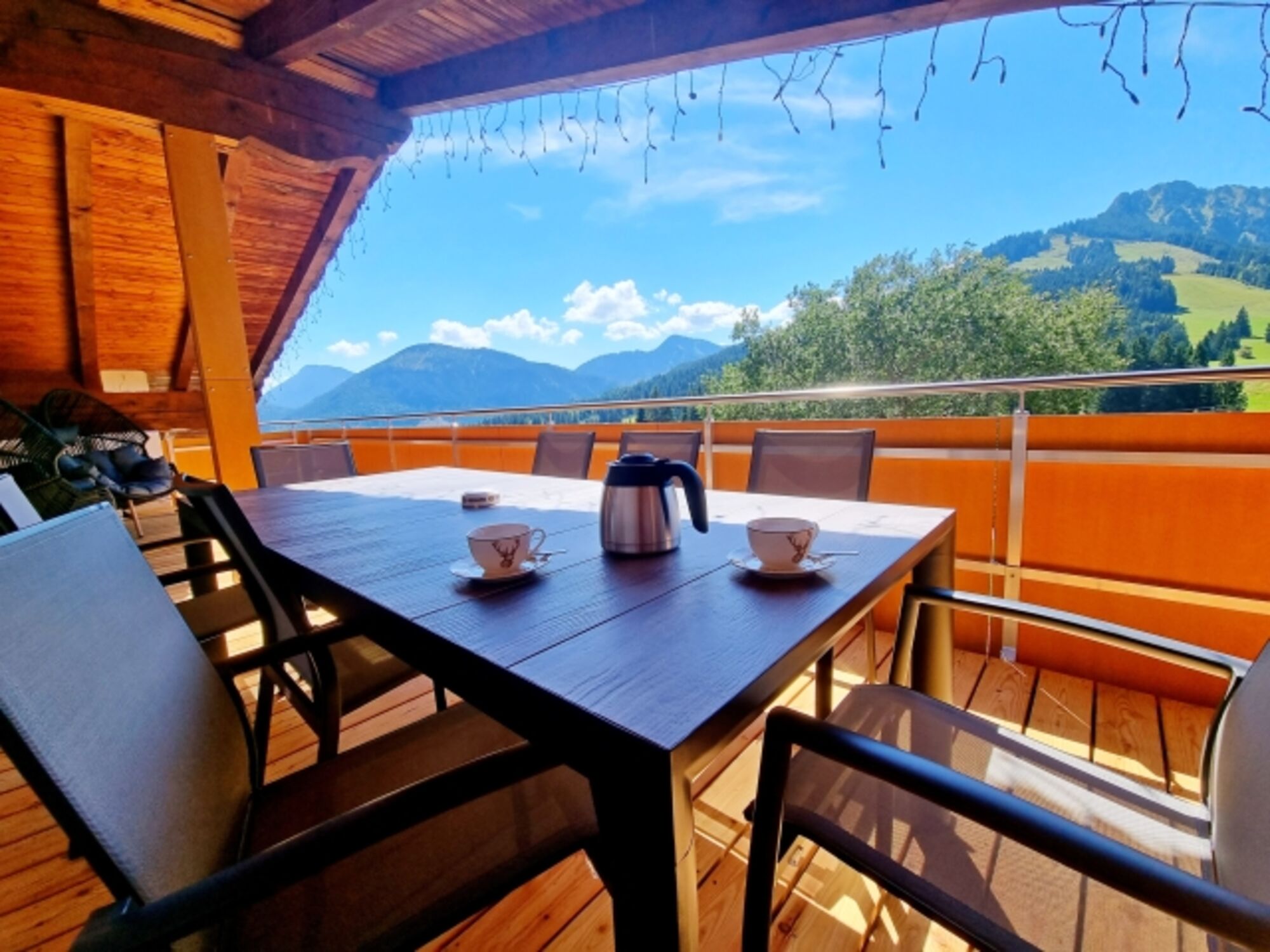 Der große Südbalkon mit fantastischem Blick auf die Berglandschaft lädt zum träumen und entspannen ein.