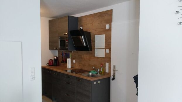 Die Wohnung verfügt über eine vollausgestattete Küche, mit Geschirrspüler, Ceran-Kochfeld und Mikrowelle, sowie über ein modernes Bad mit Dusche.