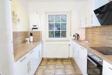 Cerankochfeld, Kühlschrank mit Gefrierfach, Korkenzieher / Flaschenöffner, Geschirrhandtücher, Mülltüten