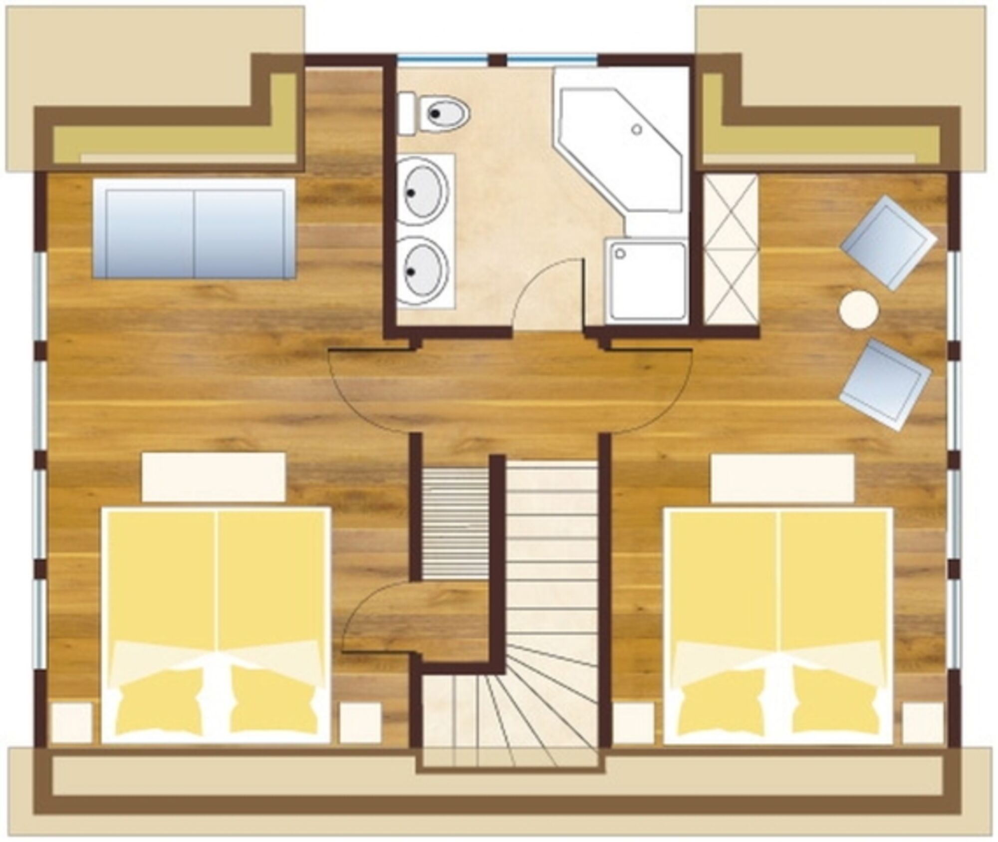 Zugang über eine innenliegende Treppe innerhalb eines Schlafzimmers (etwas steiler, nicht für kleinere Kinder geeignet)