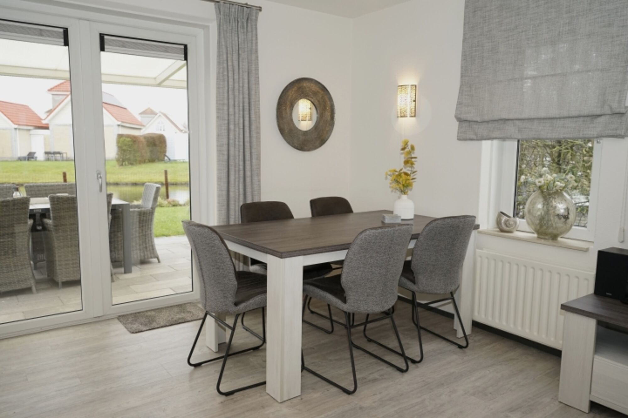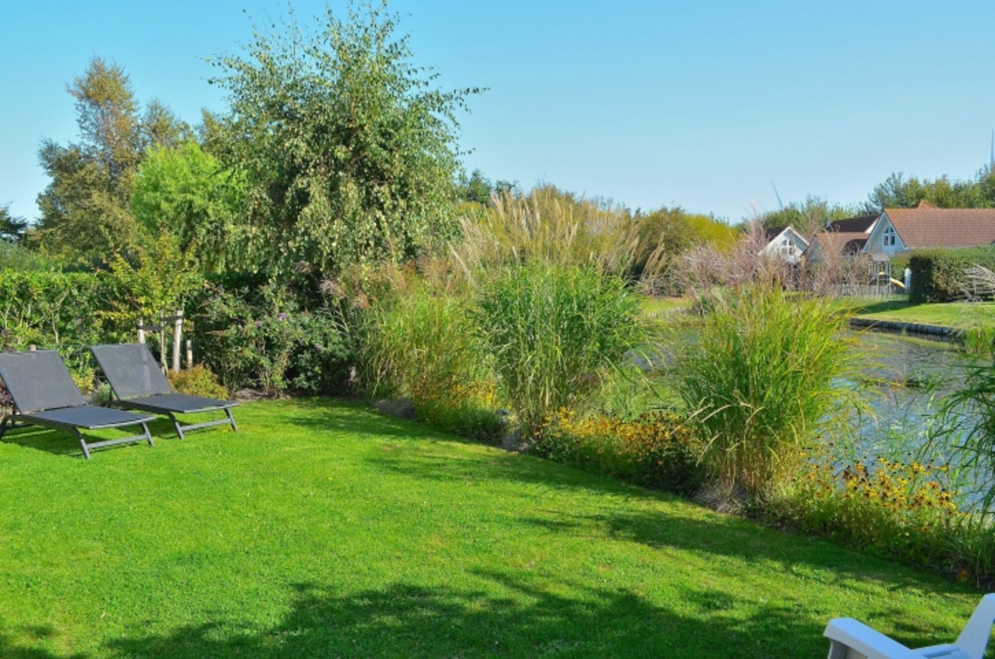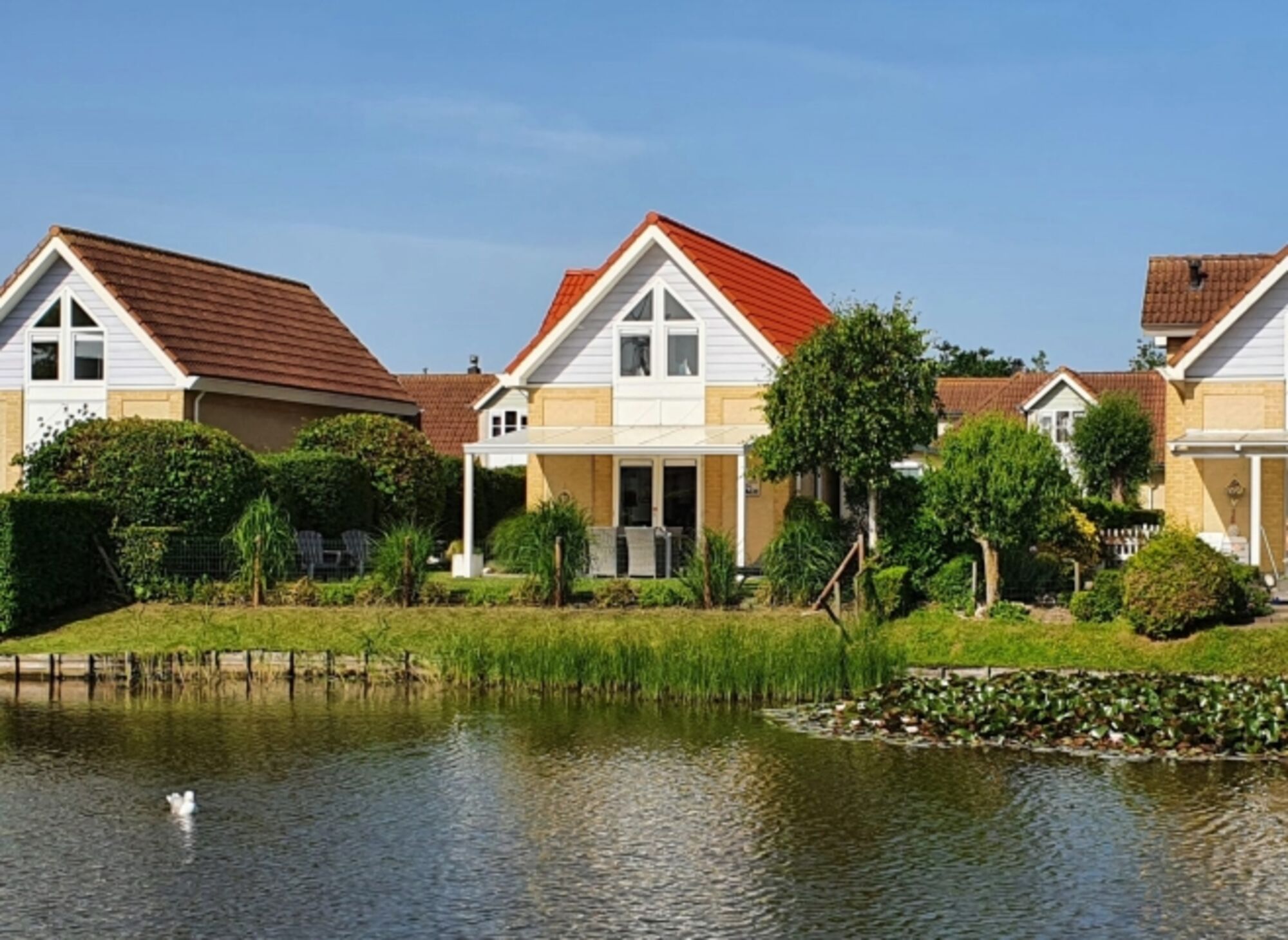 Drei Schlafzimmer mit Boxspringbetten im OG: 1 Raum mit Doppelbett und Einbauschrank, 1 Raum mit zwei Einzelbetten, 1 Raum mit einem Einzelbett; modernes Badezimmer mit Dusche und WC; separates Gäste-WC im EG; Waschmaschine; sonniger, komplett eingezäunter Garten mit 2 Terrassen und wunderschönem Seeblick; eigener Parkplatz.