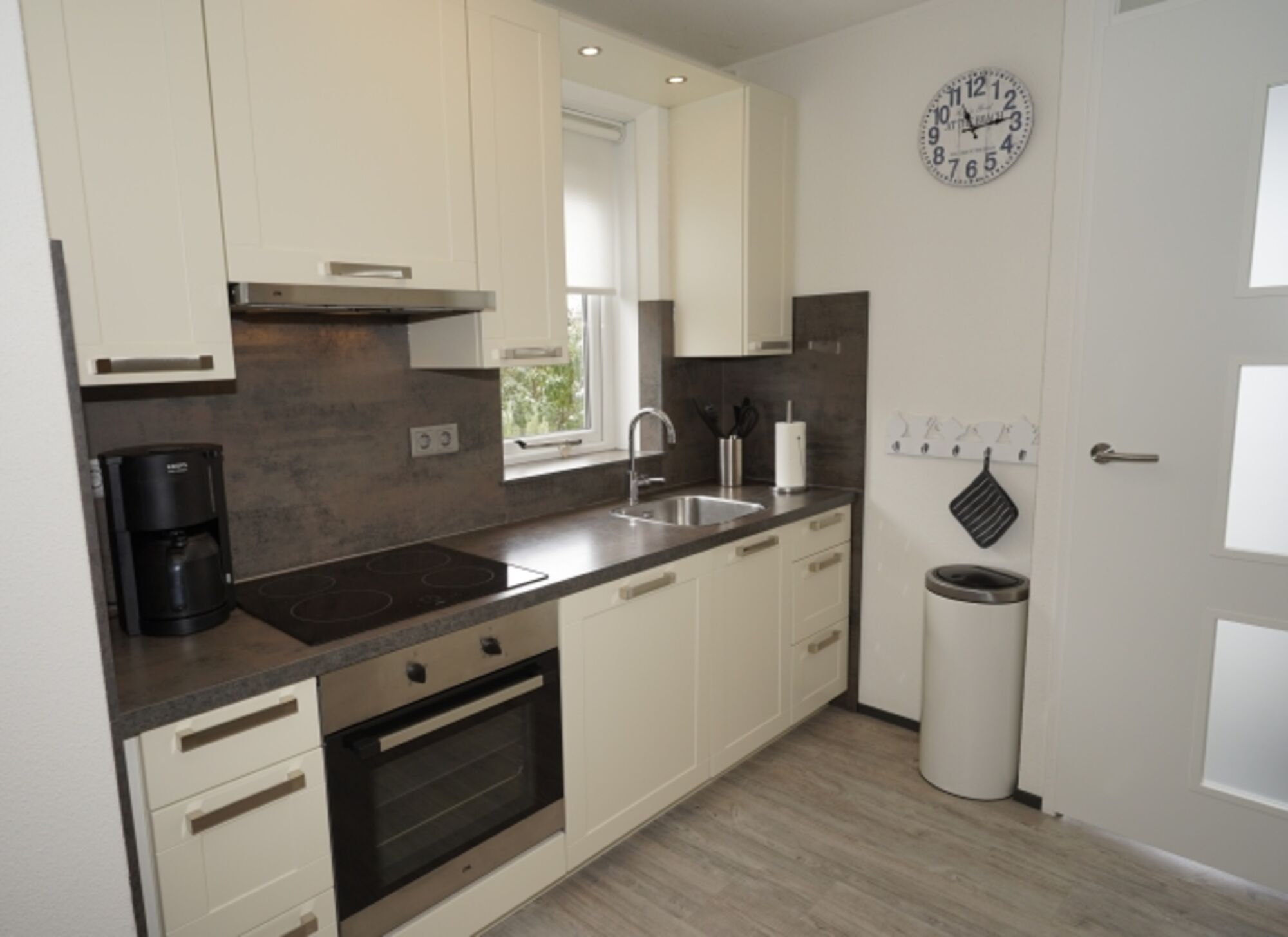 Moderne Einbauküche mit Spülmaschine, Backofen und Mikrowelle. Im Wohnbereich 50" Ultra HD 4K Smart-TV mit Soundsystem, DVD-/ 4K Blu-ray-Player, HiFi-Anlage mit CD/USB und kostenloses WLAN. Die umfangreiche DVD-Sammlung, eine große Buchauswahl und eine Spielesammlung bieten viel Abwechslung für Groß und Klein.