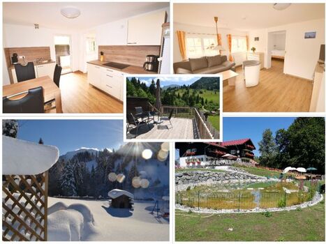 Wohnung Kora , Südbalkon, Hochgratblick im Allgäu Naturschwimmteich