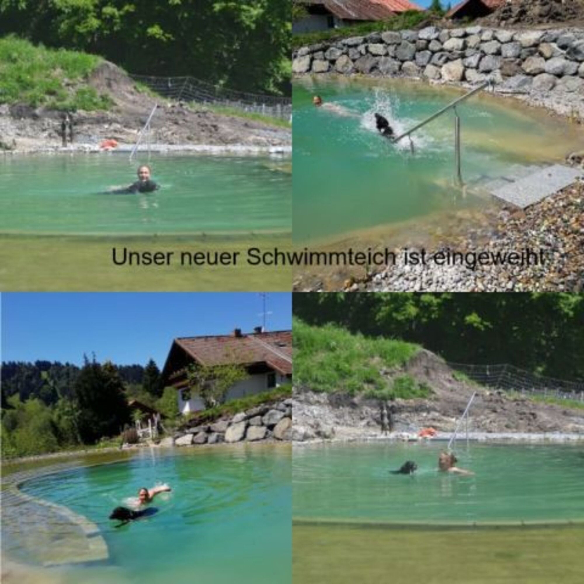 Unser neuer Naturschwimmteich (19x9m) für Menschen und Hunde ist eingeweiht.