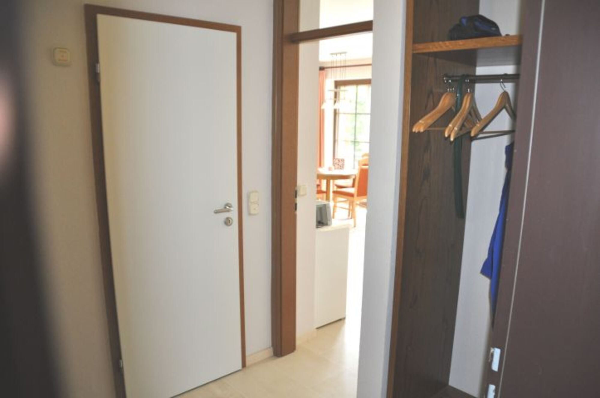 Über das sehr gepflegte Treppenhaus gelangen Sie durch Ihre Haustür in den Flur Ihrer Wohnung in dem es eine große Garderobe mit Schuhablage, einen Spiegel und einen Stuhl, sowie eine Gegensprechanlage zur Haupteingangstür des Hauses gibt.
