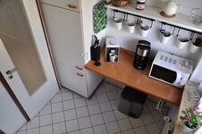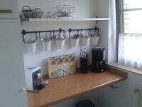 In der separaten Küche finden Sie neben einem E-Herd mit Ceranfeld und Backofen, einem Kühlschrank mit Tiefkühlfach alle Elektrokleingeräte, die Ihnen auch zu Hause zur Verfügung stehen.