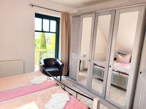 Unsere Ferienwohnung "Weitblick" befindet sich in unserer familiengeführten Pension "Landhaus Teichgraf". Sie bietet Platz für bis zu 4 Personen und liegt im Haupthaus (1. Obergeschoss). Es stehen für Sie zwei geschmackvoll eingerichtete Schlafzimmer mit je einem Doppelbett zur Verfügung. Außerdem verfügt die Wohnung über einen Wohn-/Essbereich, einer Küche, einem Badezimmer sowie einem großen Balkon mit traumhaftem Blick über das Grundstück.