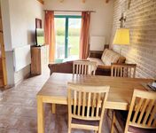 Unsere Ferienwohnung im Doppelbungalow befindet sich in unserer familiengeführten Pension "Landhaus Teichgraf". Sie bietet Platz für bis zu 5 Personen und liegt gegenüber dem Haupthaus. Dort befindet sich ein Schlafzimmer mit einem Doppelbett sowie ein Schlafboden (erreichbar über eine Leiter) mit einem Futon-Doppelbett. Außerdem verfügt die Wohnung über einen Wohn-/Essbereich, einer Küche, einem Badezimmer sowie einer Terrasse.