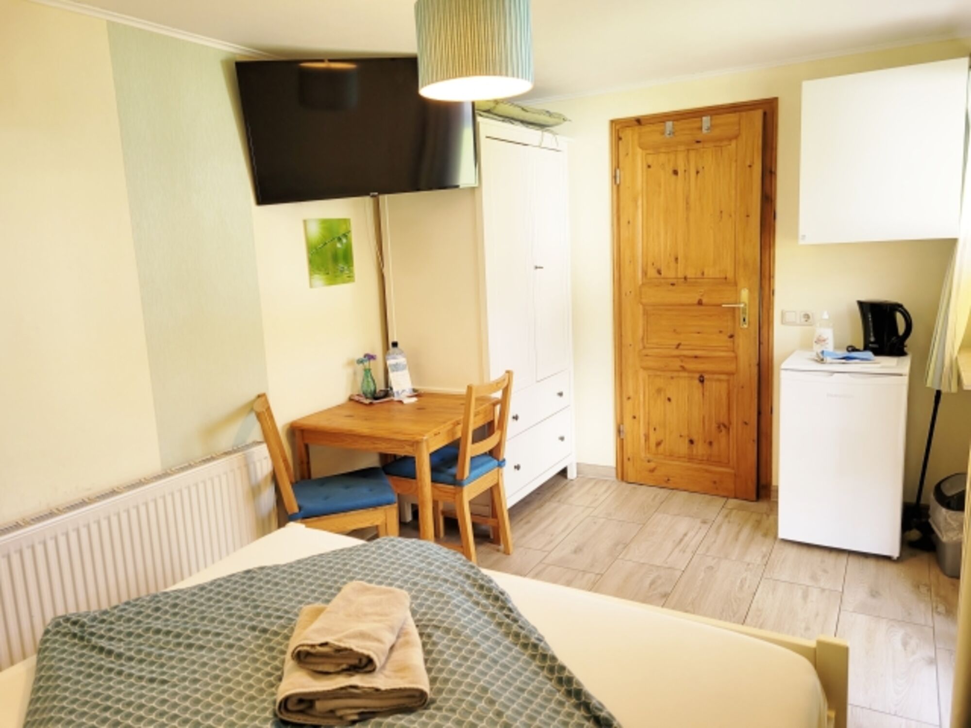 Tisch und Stühle sind ebenso vorhanden Doppelbett 1,80 x 2,00m, Kommode, Spiegel, Leselampe am Bett