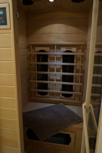 Unsere in 2017 neu errichtete Ferienwohnung ist elegant, hochwertig, modern und erholsam. Es erwarten Sie 60m² purer Urlaub mit 2 Schlafzimmern, 1 Wohn/Esszimmer, 1 Küche und 1 Badezimmer mit Dampfdusche , Whirlpool, Shiatsu-Massagesessel, Infrarotsauna 65 Grad,