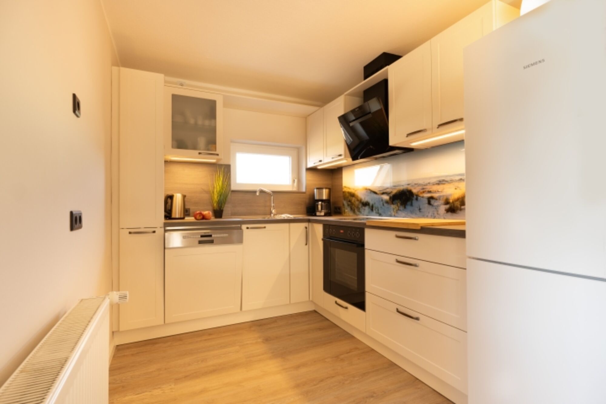 Cerankochfeld, Dunstabzugshaube, Gefrierschrank, Korkenzieher / Flaschenöffner, Gewürze (Salz, Pfeffer, Zucker), Mülltüten
